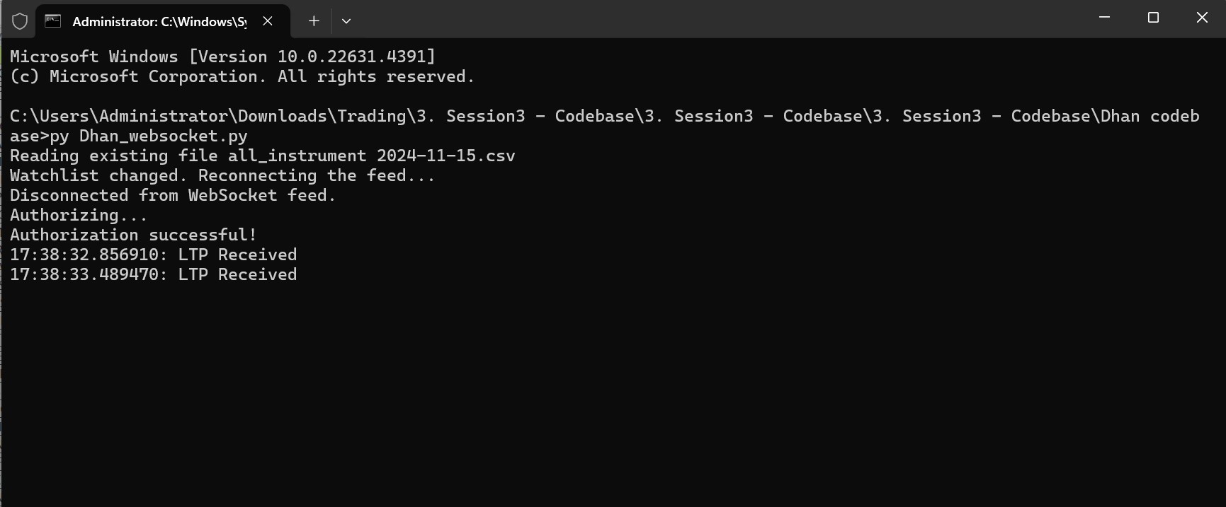 I have changed only option expiry date in the script name and then run the code