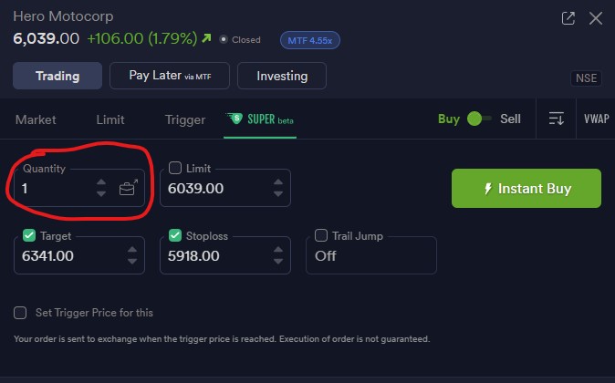 Also on web, you can click on bag icon and it will select qty based on your available funds. If you are referring to something else, please elaborate.