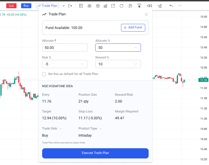 Hi @UjR, you can place orders as per fund allocation via Tv.dhan.co Trade Plan feature. PFA screenshot for reference.