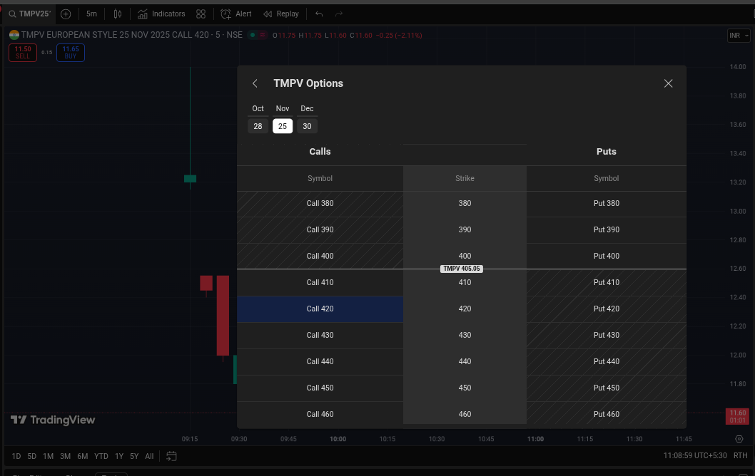 I noticed something odd with Bajaj Auto — they’re not showing up in the TradingView App from Dhan. Baja Auto Option chain is also not tradeable vie tradingview.