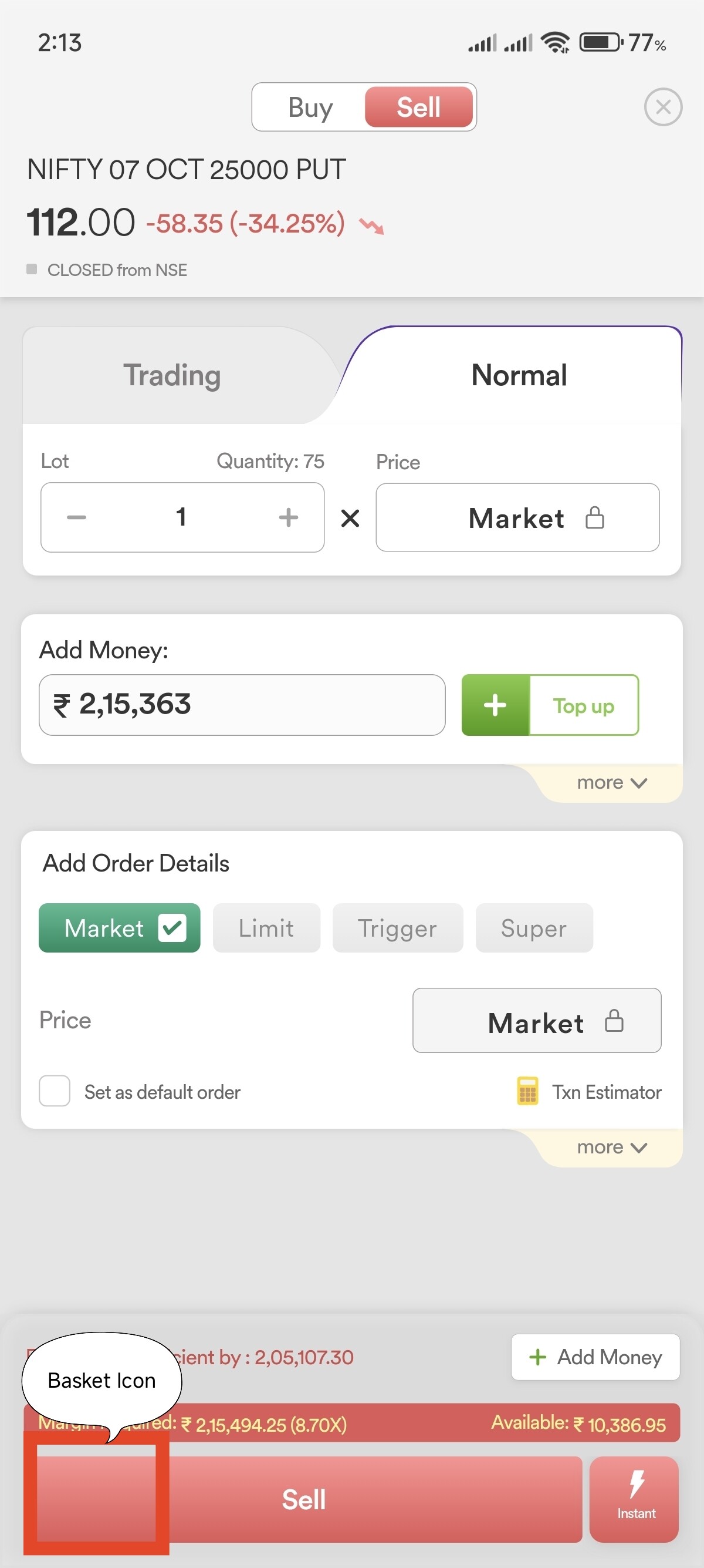 Please add a small basket icon on order(buy/sell) page also so that if in charts I add any new tab of strike I can easily add that strike to basket. Currently basket icon is only accessible only when scrip is in watchlist or from option chain.