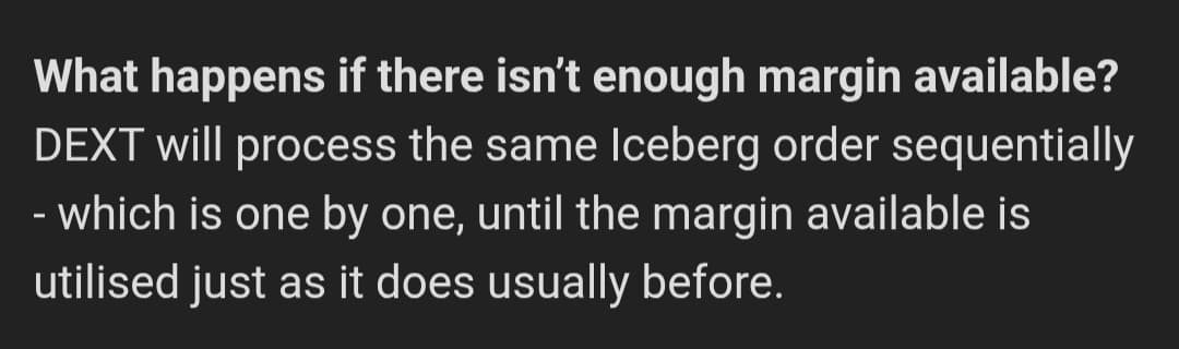 Well, thanks for the detailed discussion on this topic, I think thereâs a fundamental misunderstanding here around what parallel processing in DEXT actually does versus how margin availability works in real trading scenarios.