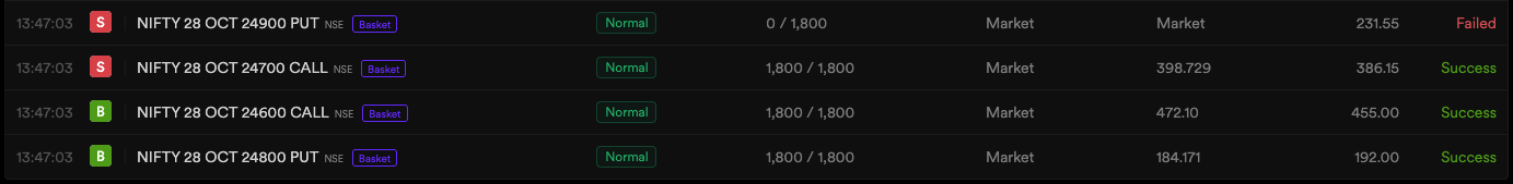 You mentioned adding a delay to âensure both orders go through.â Unfortunately, that doesnât guarantee success - because execution timing is controlled by the exchange, not the brokerâs internal system.