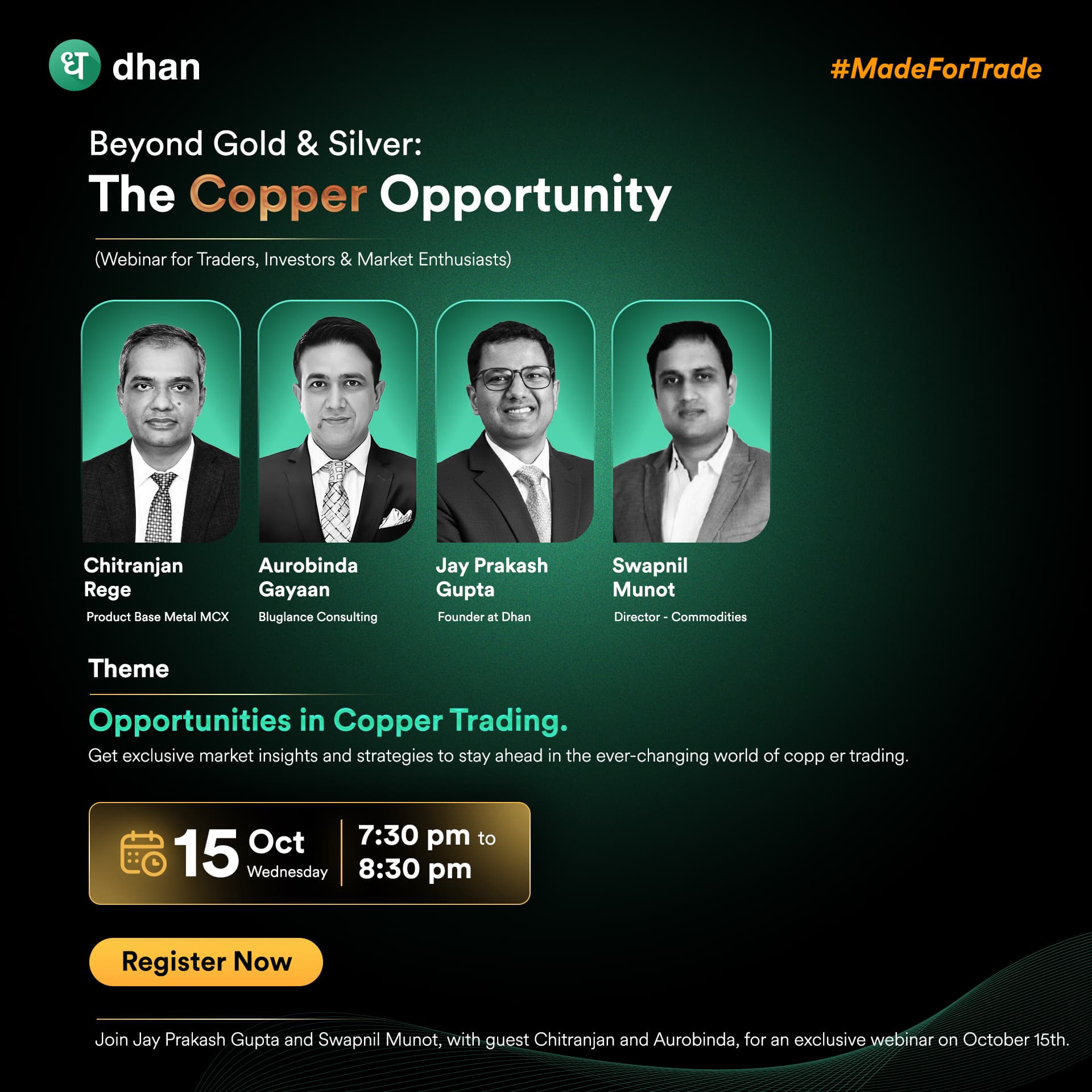 Join us on Wednesday, 15th October 2025, from 7:30 PM to 8:30 PM for an exclusive session focusing on copper trading, an exciting space beyond traditional gold and silver markets.