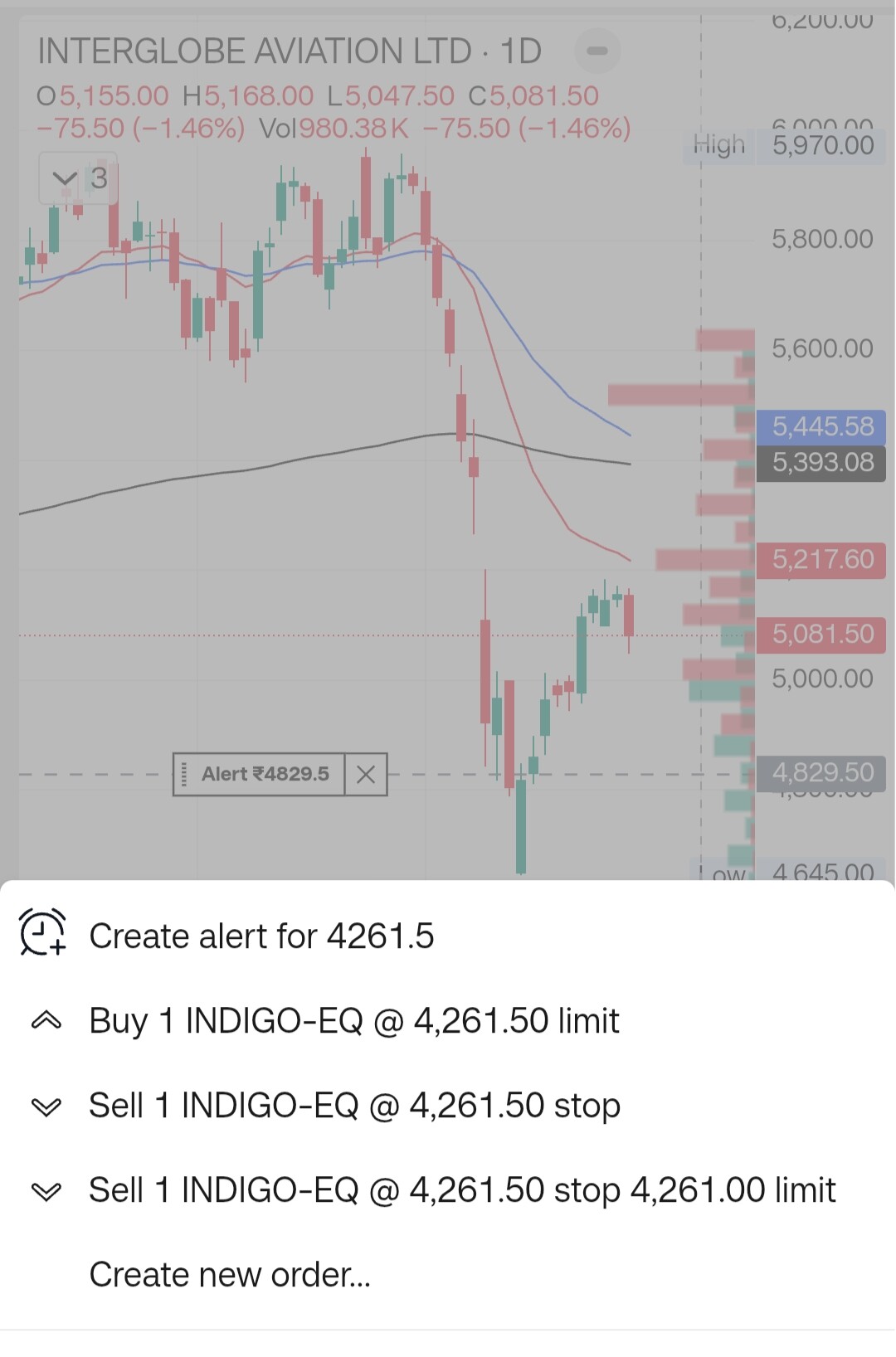 Other broker providing create alert and Oi profile on mobile screen.