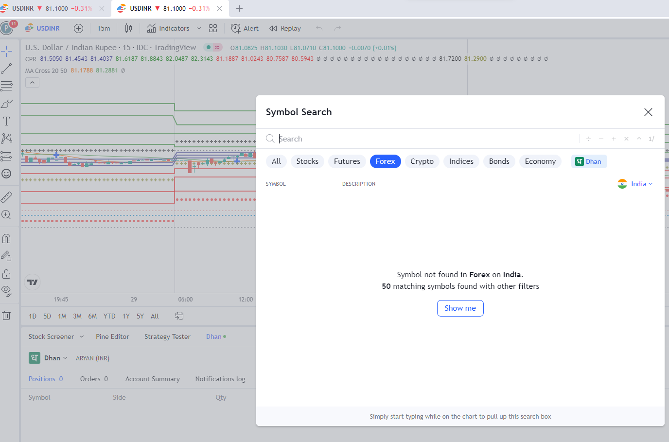 Why Iām not able to see Currency Futures in TradingView (logged in using Dhan) ?