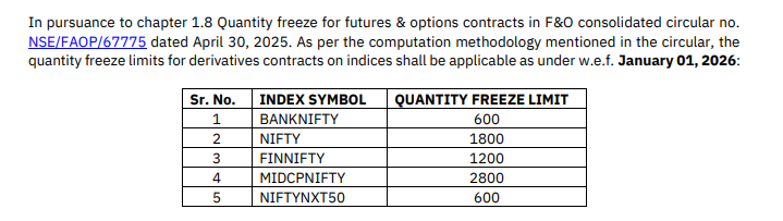 Has the freeze limit for nifty options contracts revised or is still 1800 ? The lot size has changed to 65 therefore the question