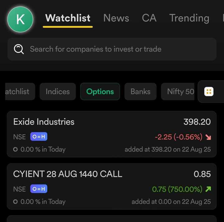 We do show O=H, O=L in the watchlist for both stocks and FnO contracts, refer screenshot below.