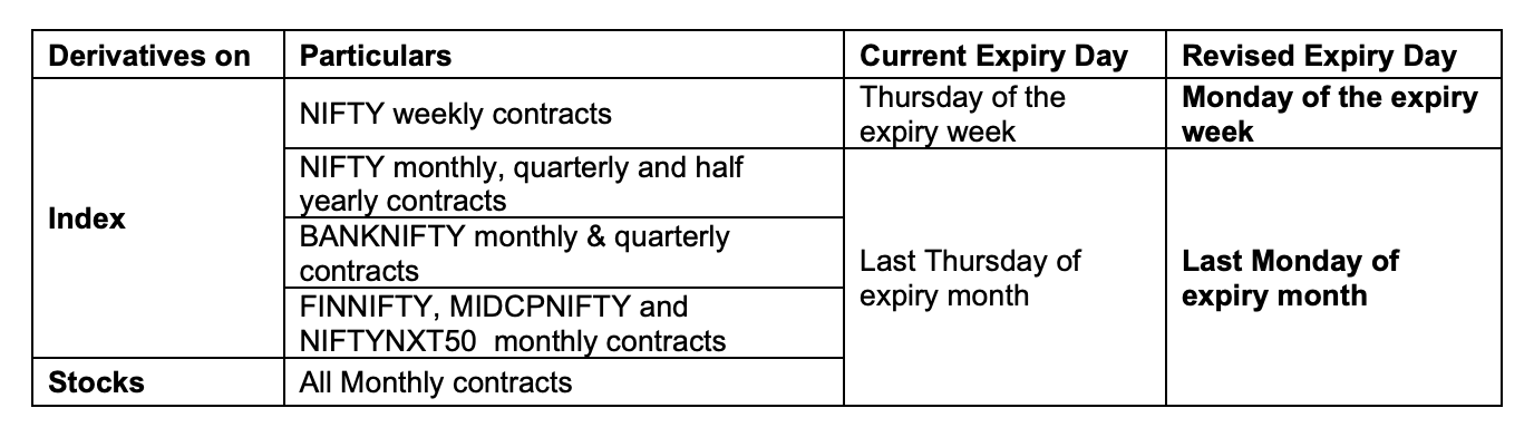 The revised expiry schedule comes into effect from April 04, 2025. All existing contracts will expire as per the old schedule till April 03, 2025. Any contracts created for trading on or after April 04, 2025, will follow the new expiry schedule.