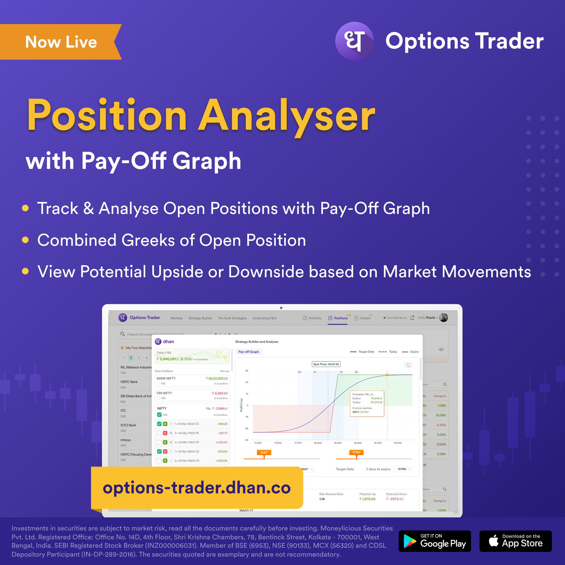 We have got an overwhelming response for the Options Trader platform. Traders have shared their feedback and a lot of feature requests. All of us at Dhan closely read and go through all your notes, suggestions, feedbacks and requests. One such feature request was regarding the analysis of Open Positions with Pay-off graphs.