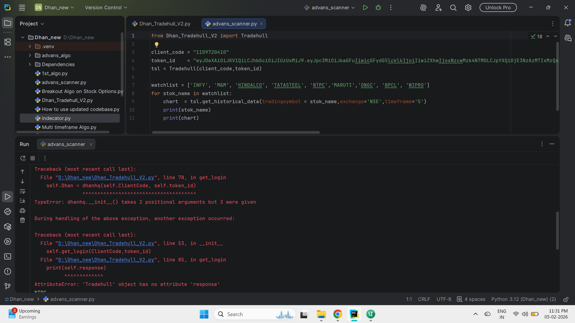 I updated the Dhan_Tradehull_V2 code, and now I’m not getting live data; instead, I’m getting an error.