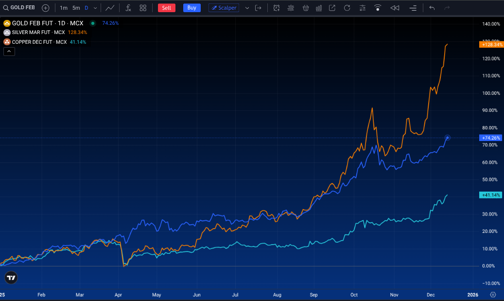 Gold, silver and copper are once again trading close to their all time zones, continuing the huge run we saw through-out 2025. The momentum in commodities has stayed strong, driven by global uncertainty, supply issues and steady demand from both investors and industries.