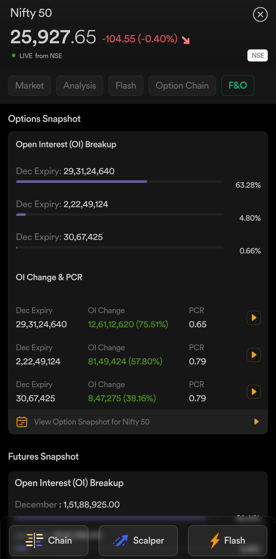 -Everytime we need to see latest data we need to go to Dhan app home page and again visit f&o tab.
