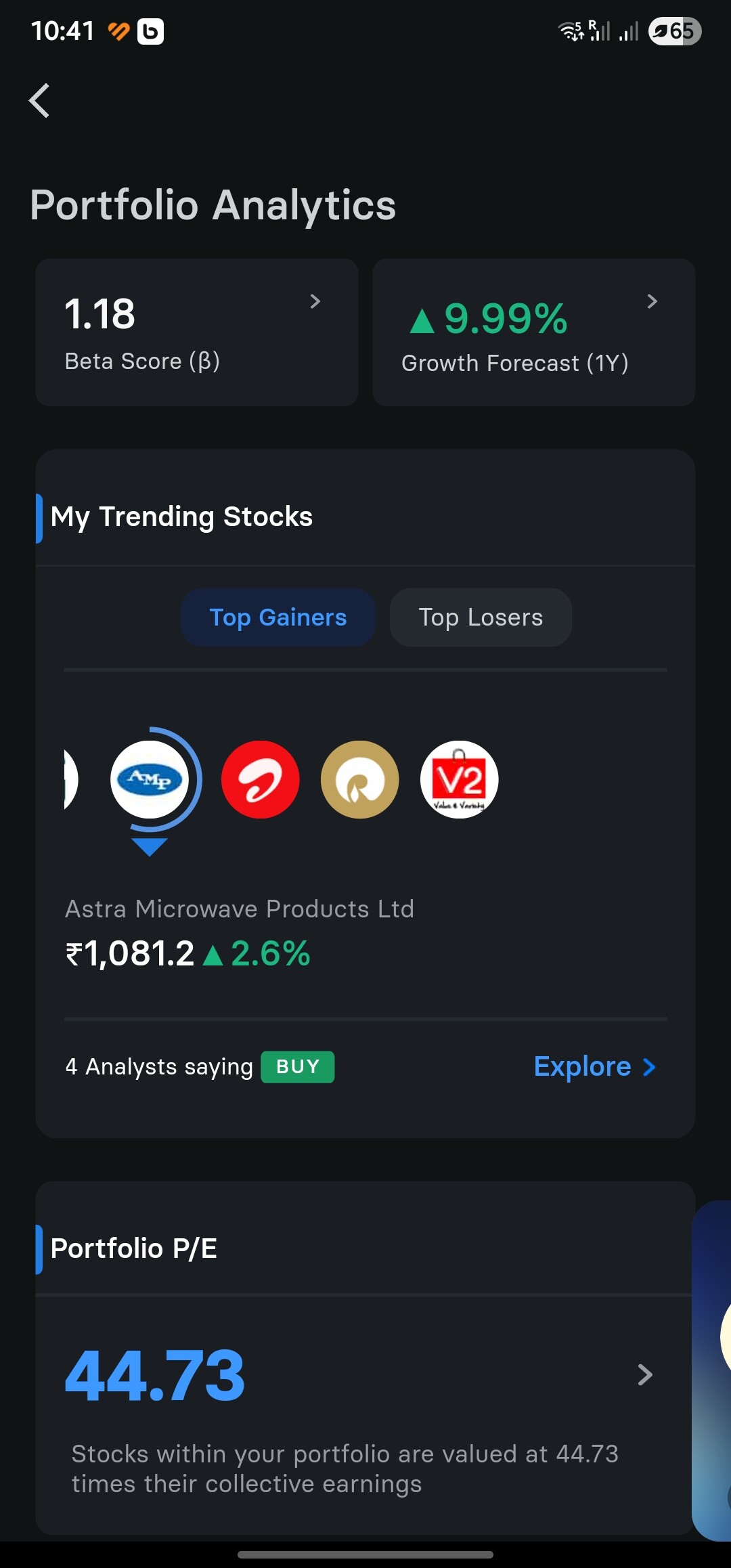 Portfolio analysis required like posrfolio growth chance in future, portfolio PE value, detail reports like ind money, ticker tape… Its should be useful for everyone