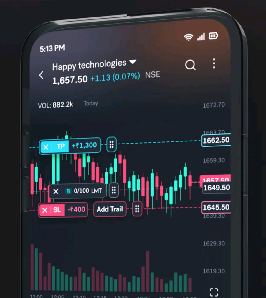 Click Order>Order is executed at market price (we can even set limit order by tapping on the price bar)>Tap the ordered box showing the PnL and you will get options to set SL and TP. Simple drag and drop on both sides unlike in Dhan where you can only set either SL or TP. In fact, despite my love for Dhan I am already using that broker for scalping now. I hope Dhan upgrades the Power Scalper soon. @Mohseen_Usmani@PravinJ