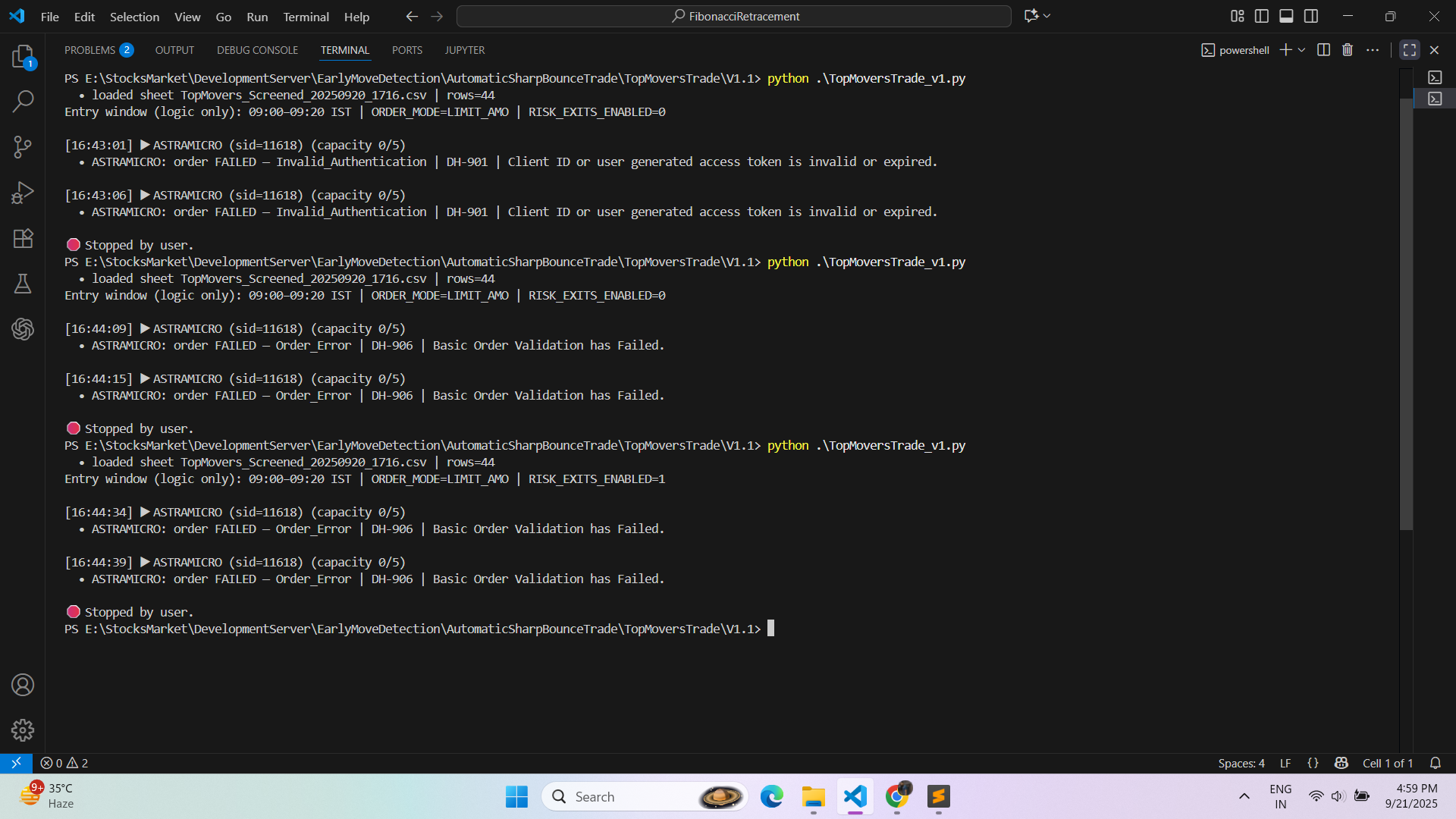 9/21/2025 7:46 PLACE_LIMIT_AMO ASTRAMICRO 400 {“errorType”: “Input_Exception”, “errorCode”: “DH-905”, “errorMessage”: “Invalid SecurityId”}