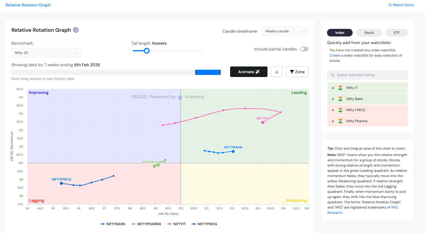 I am an active trader on Dhan and I really appreciate the advanced charting features you’ve built. I am writing to suggest a powerful new visualization tool: the Relative Rotation Graph (RRG).