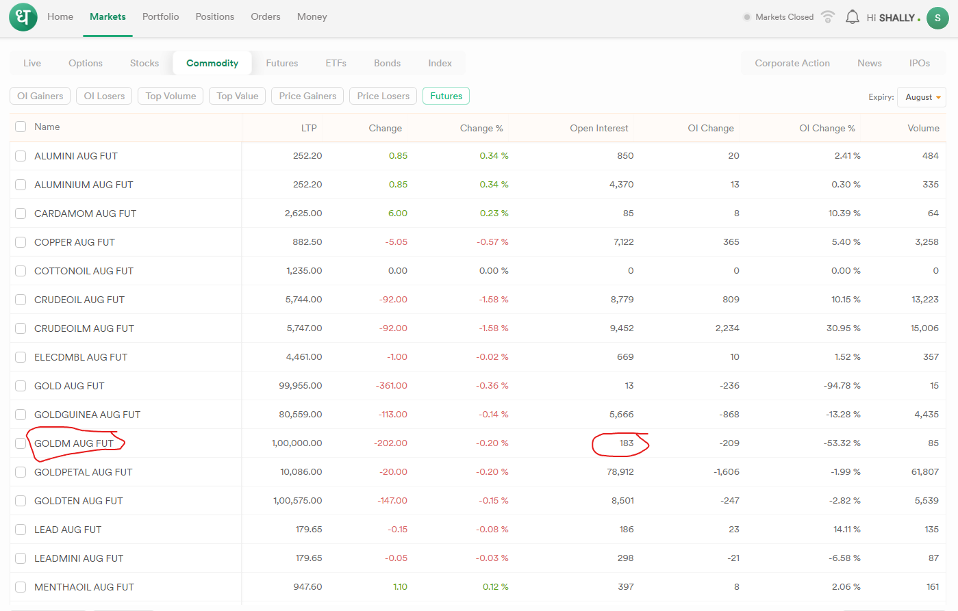 GoldM is not appearing today because most probably, it’s expiry was yesterday. Now, I have to look in Sept and then move back again to August for other commodities.