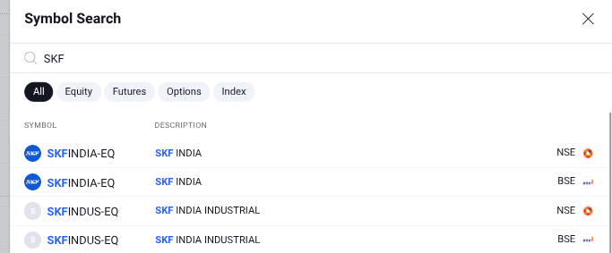 Yes @Mohseen_Usmani I found it, but there seems to be a problem searching with the ticker on Dhan TV because it is showing up as SKFINDUS-..