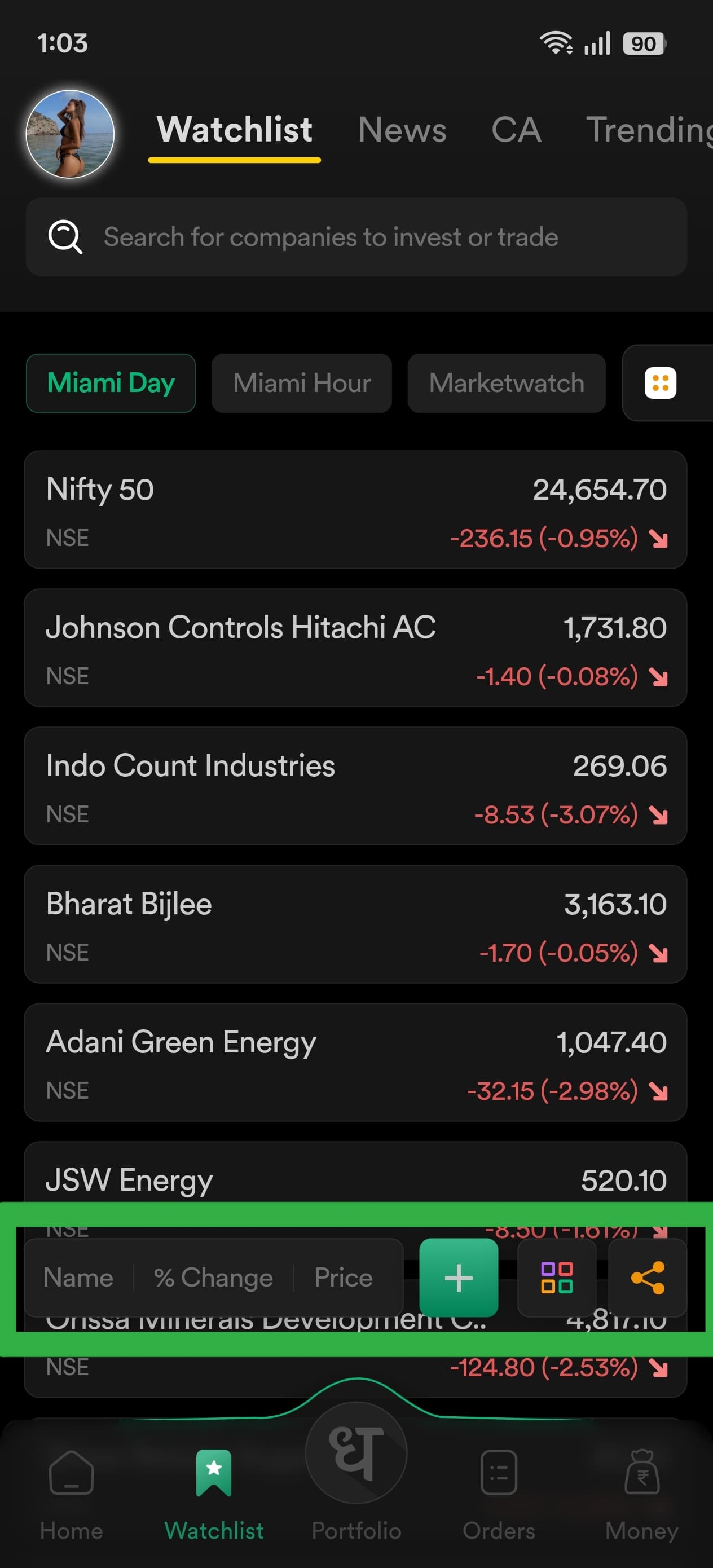 Given the watchlists card design, already fewer stocks fit in the screen and on top of that, a big gaint bar is right in the middle.