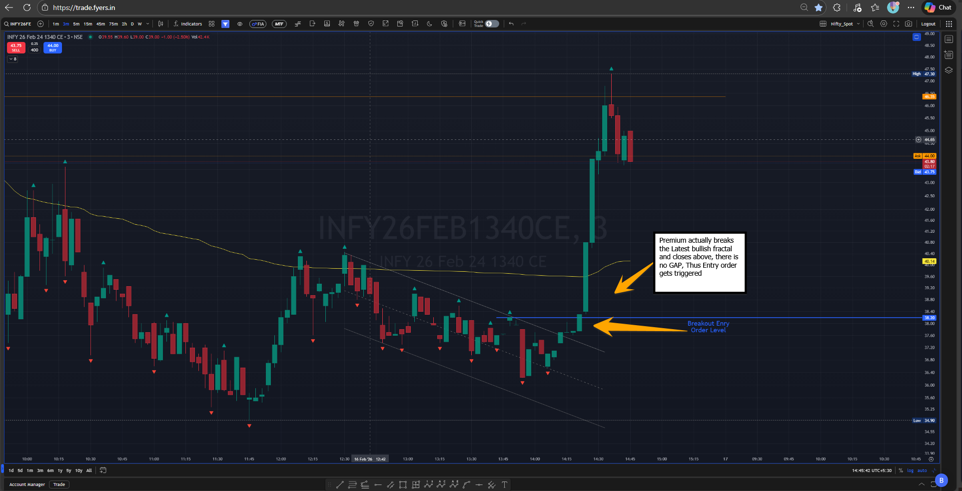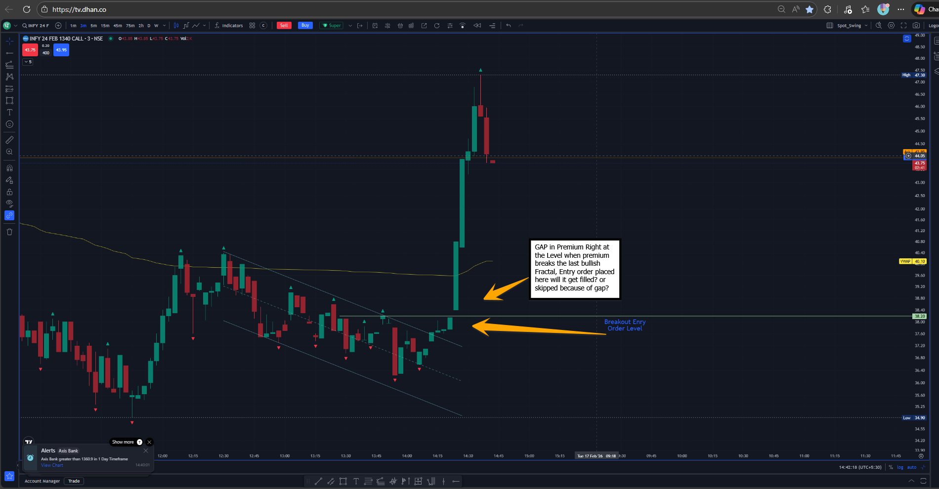 From Feb’26 onwards I’ve thought of executing this setup with Dhan on TV charts, but I’ve been observing that during such Breakout level in the Premium chart, there is a GAP gets created almost every time.