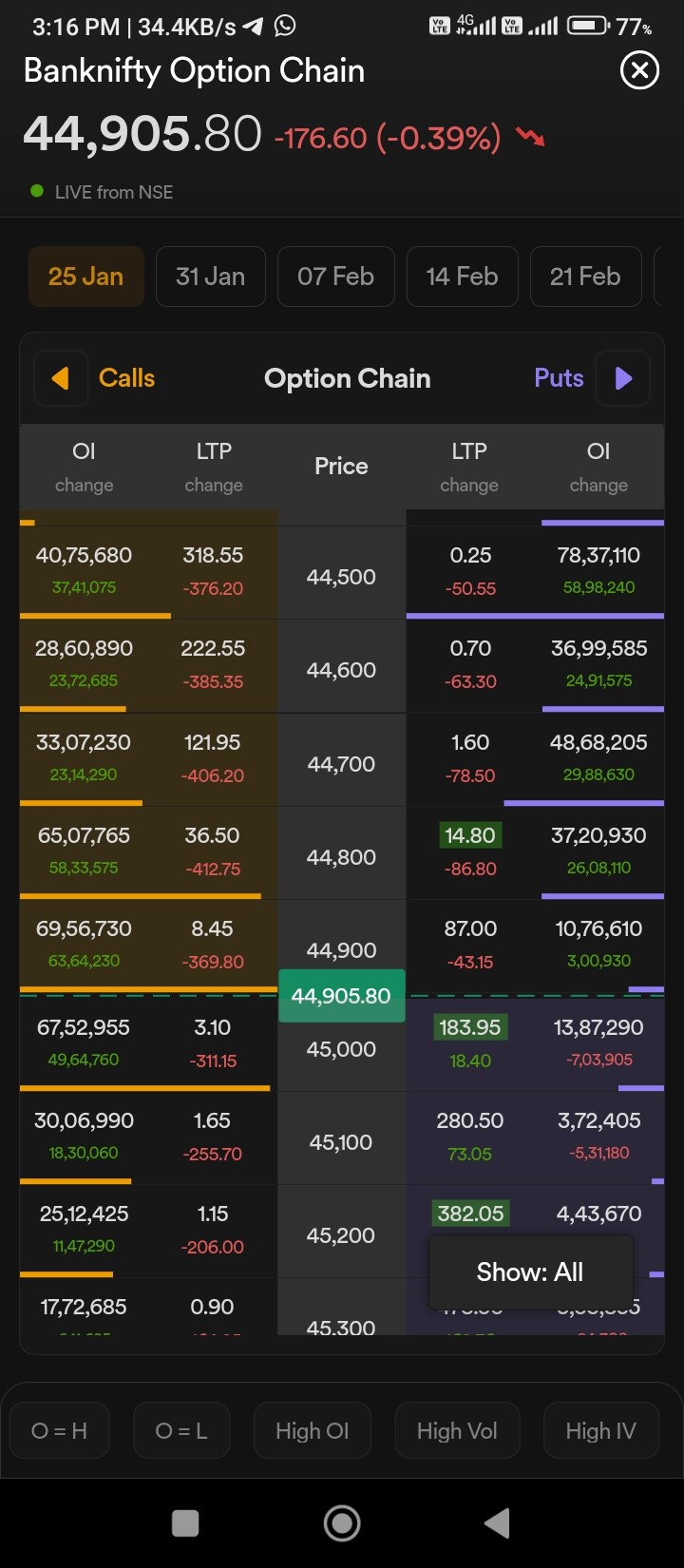 Options price & options chain not link .. different price show .. options chain strike price up but options premium not up .. down .. strike price & options premium different show ..