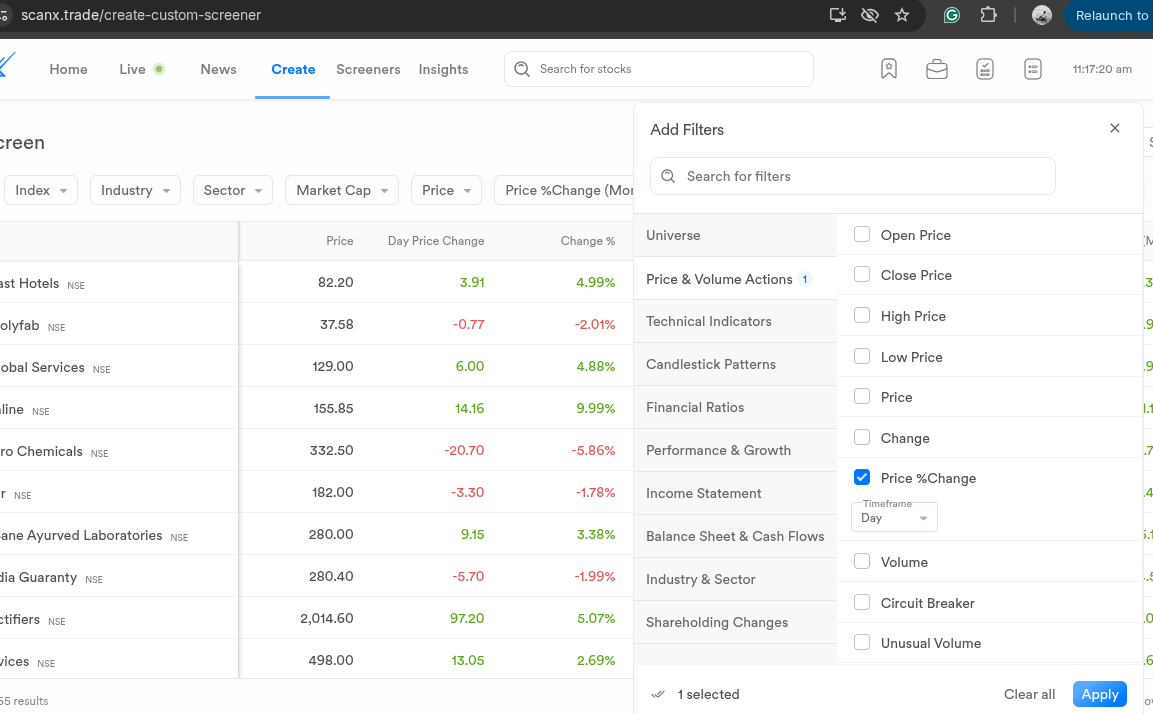 Please provide a feature to filter stocks based on ratio or 1M 3M 6M 1Year gain ranking system.