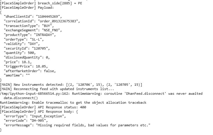 “UnderlyingSeg”: “IDX_I”, # Use NSE_EQ for stocks, IDX_I for index options