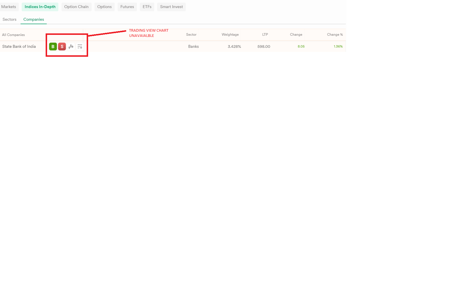 Hi @vikeshsatpute This has been updated, we have added shortcut to TradingView charts in Companies for Indices-InDepth.
