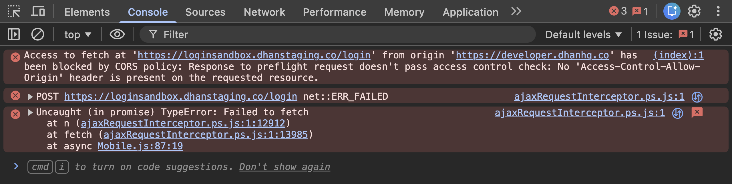 We checked on our end and it seemed fine. Do note Developer login requires a separate dev account to login.