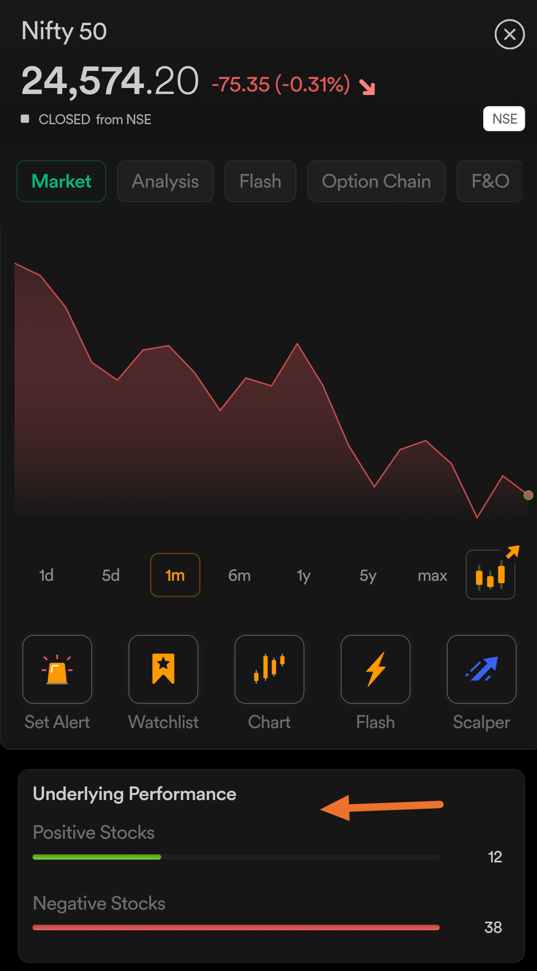I get to know the Underlying Performance, however, if I wish to know the symbol names, I do not have that option.