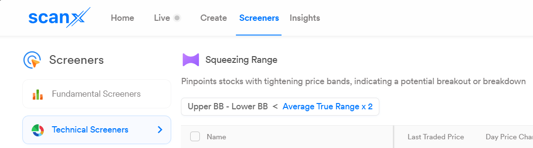 I need your help to understand how I can create condition the way it is created in Technical Screeners → Squeezing Range.