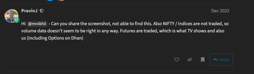 I feel VWAP should only be in Index Futures because what I have seen is VWAP is basically used to scalp in a shorter timeframe and in scalping it’s usually Option Buying. Now if you were to see the Index Future price and the delta of the options, it’s usually in sync i.e. a 50 delta is closer to the Future price compared to the spot. Hence in my opinion VWAP on Spot doesn’t really make sense for an Index and just because other brokers are adding it won’t be the right thing unless there is a genuine scenario which I would really like to understand and hence request the community members who are looking forward to VWAP on an Index’s spot to explain.
