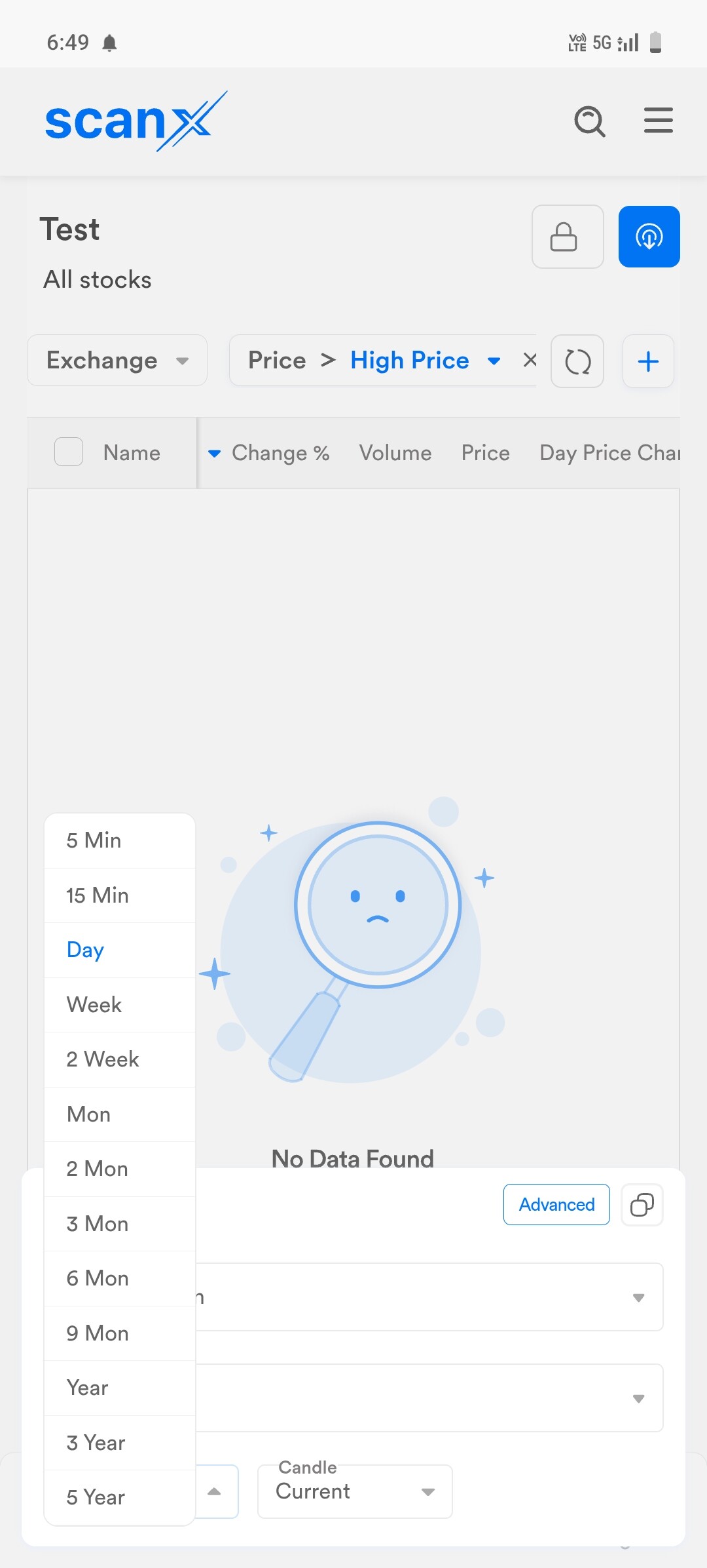 I wanted to find stock currently having consolidation /Squeeze / Sideways… As of now from only” Squeeze Range” scanner is meeting that purpose from Scanx, But it’s in Daily Timeframe. I have tried to change it to 15M timeframe. I Couldn’t do it,