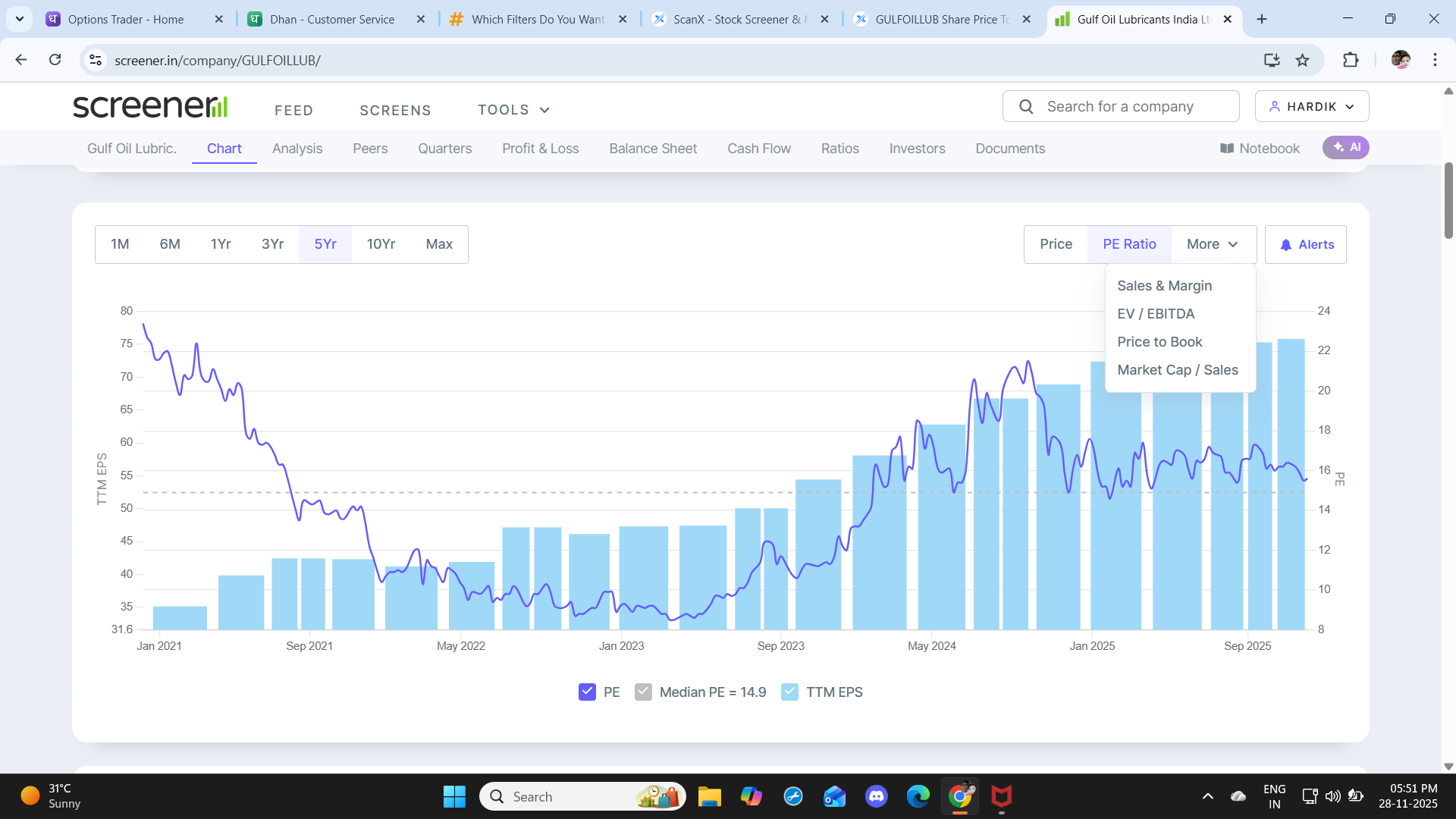 on this part Even apart from this need PE ratio Chart in the same flow of the fundamental data for ur reference chk the below 2 image one of ur Scanx & other one of Screener.in