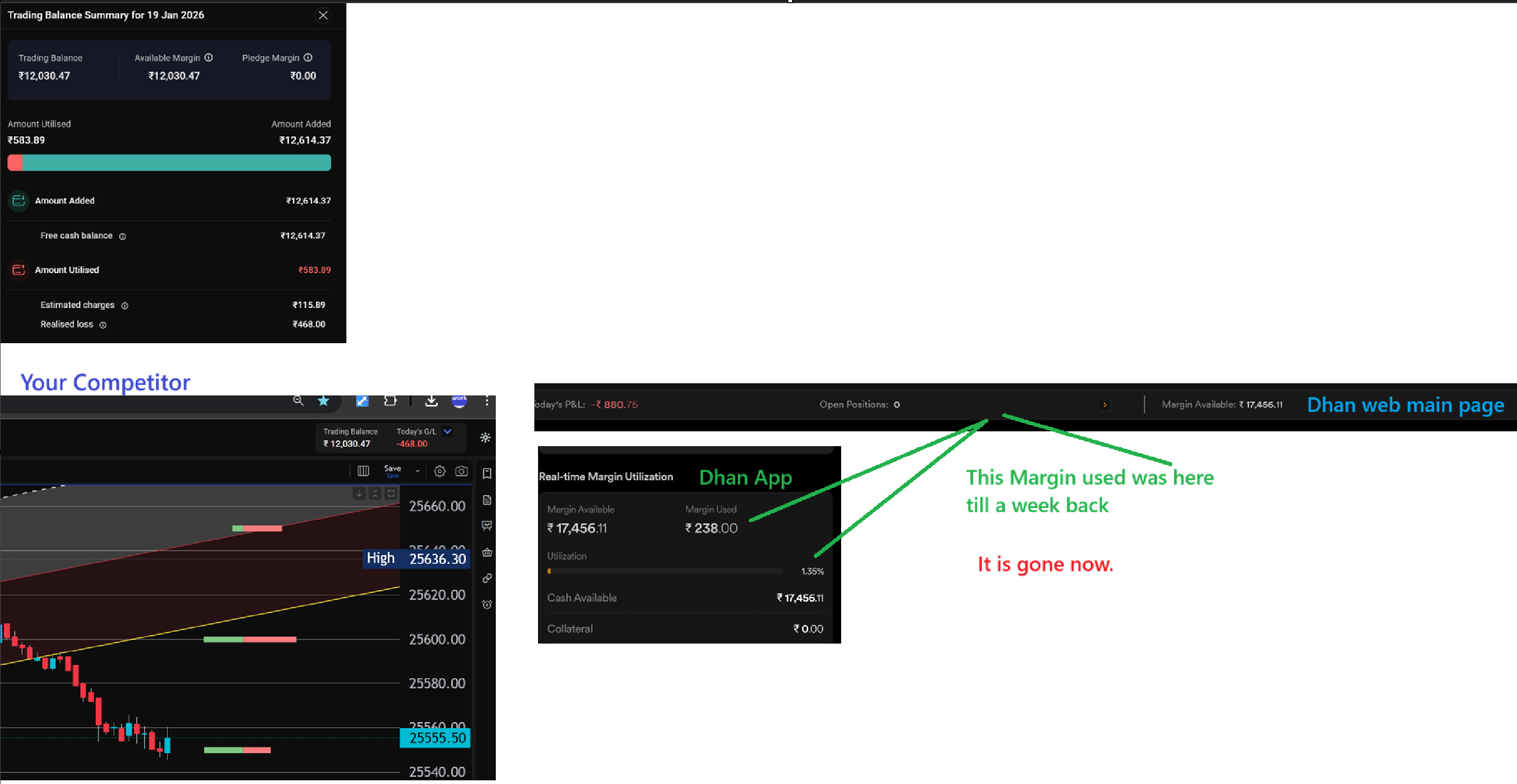 Request you to pls restore the used margin on web and improve to show a clean and clear live P/L / Expense / Margin